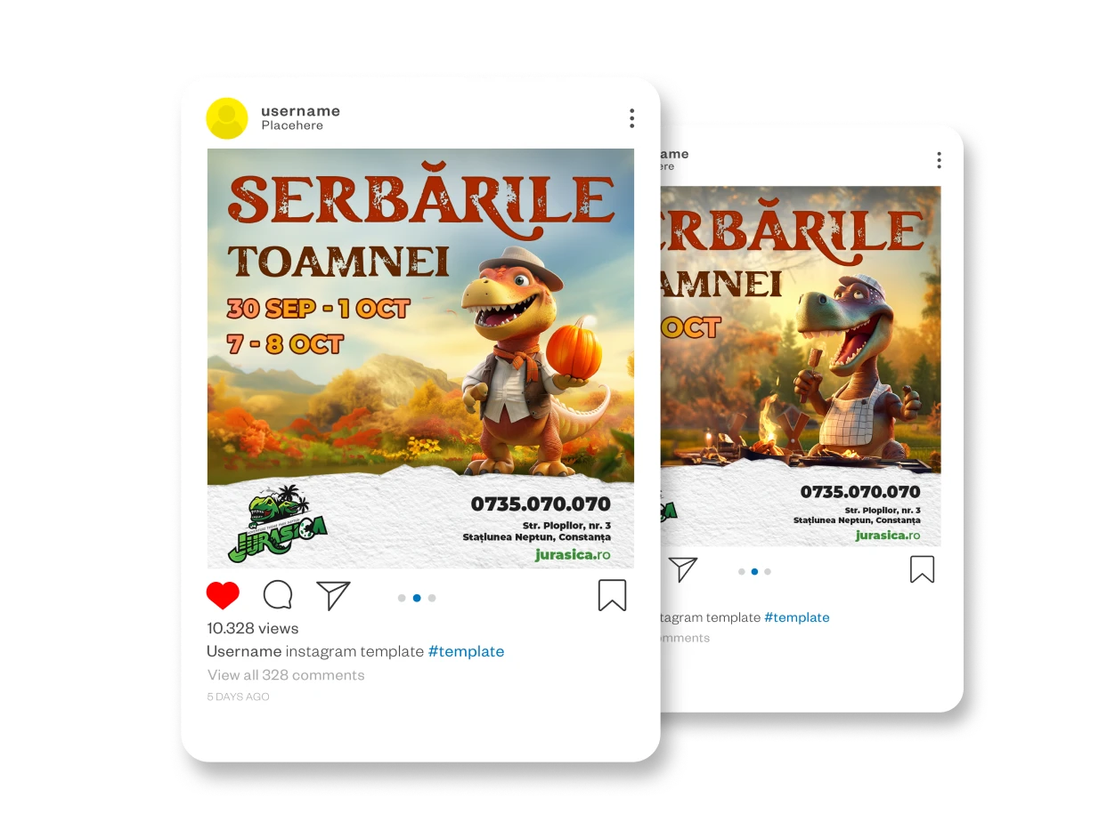 I collaborated on creating advertisements and social media materials for Jurasica, a dinosaur-themed park. We opted for a playful design to appeal to our primary audience – parents bringing their children to the park for various themed events. To enhance the appeal and create a vibrant and youthful atmosphere, we often incorporated AI-generated dinosaurs into our designs.