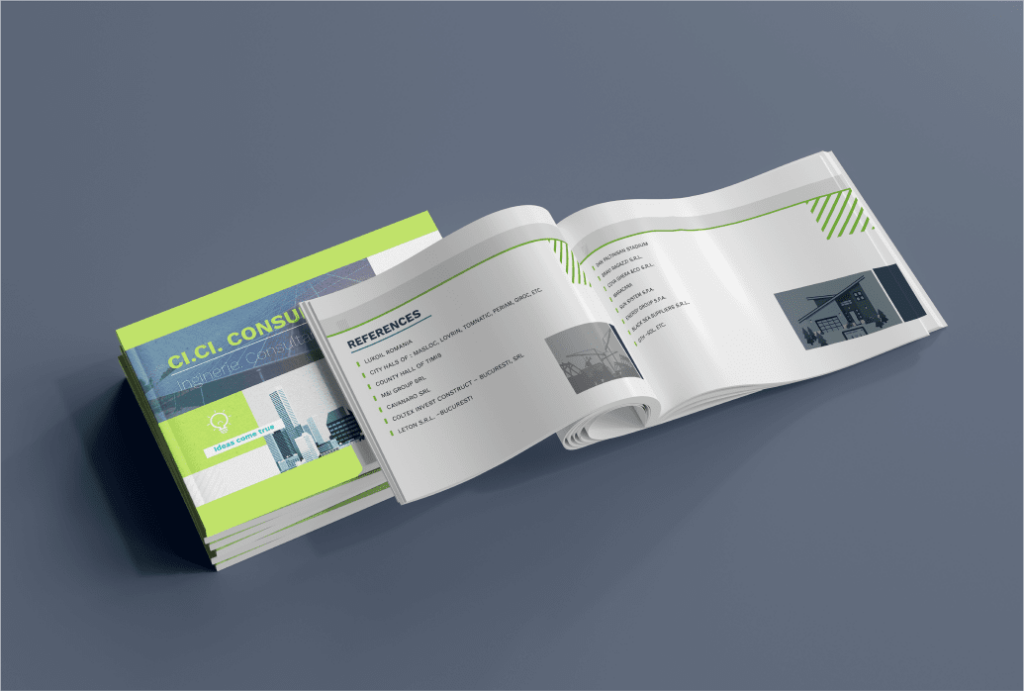 CI.CI consult is a civil construction company for which I made a presentation catalogue with company description and successfully completed projects.