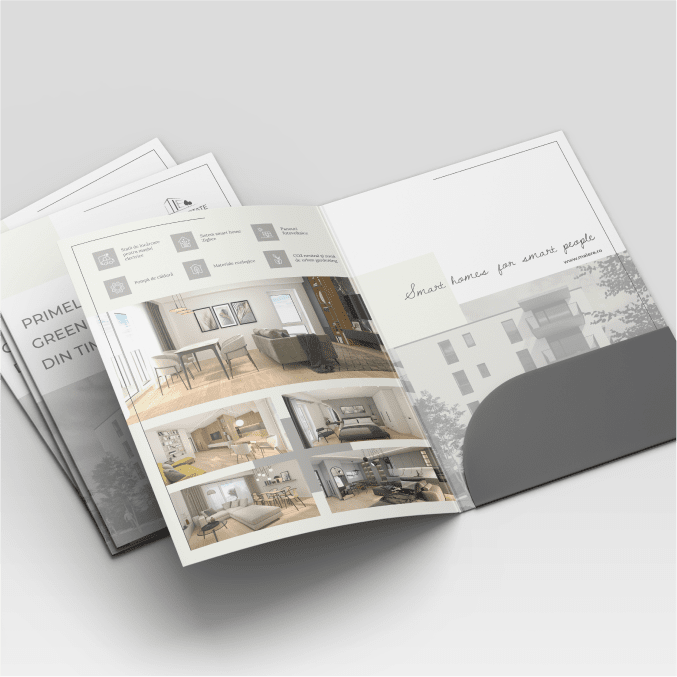 The client owns a real estate business and wanted a minimalistic and elegant design for some print materials. He requested a pocket folder to have the actual design, as well as business cards.