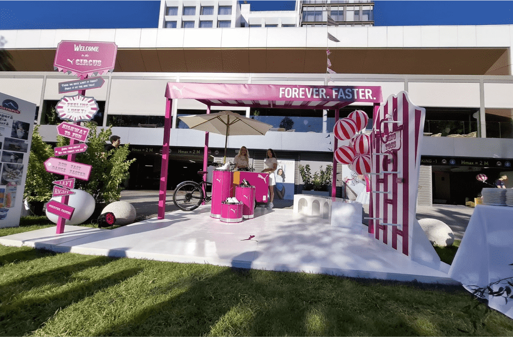 Puma requested a dedicated circus inspired corner, where they presented shoes from the new Puma Palermo Vintage collection, but also accessories from the special collection created by PUMA in collaboration with Untold Festival.